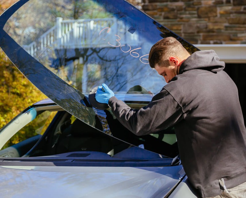 • Preparation: The technician will clean and clear away any debris or glass shards from the damaged area.